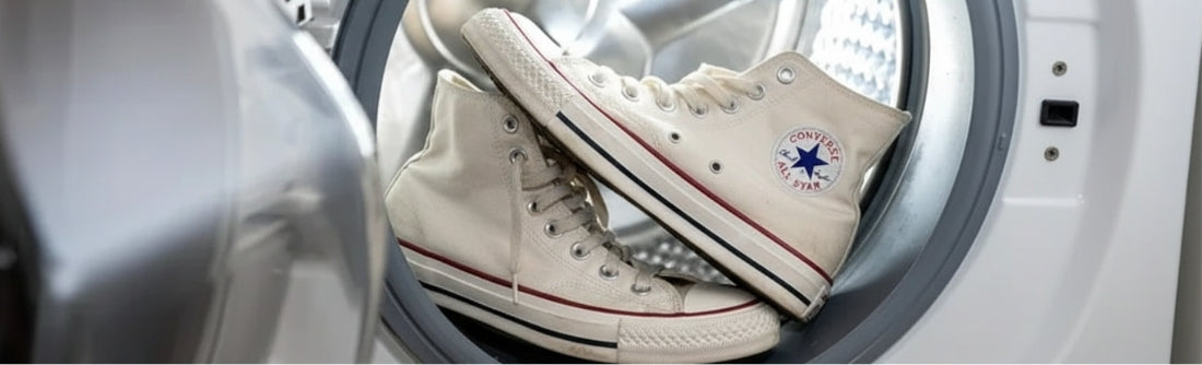 ❌ In de droger doen - De hitte vervormt je sneakers permanent